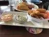 We held a fundraiser and this restaurant offered to help. They contributed their beef and potato empanadas and coconut breaded onion rings. The onion rings are huge with large slices of onion. The breading is crisp and tasty without being greasy. The empanadas are large and filled with seasoned beef and chopped vegetables and potatoes. This is a fun and lively place with a casual outdoor bar and full dining area. I'd definitely go back because of the overall quality of food, pricing and service. But, I'd like to mention that they are very community minded, so please give them a try! They also have take-away food which allows for front door parking for your pick-up.