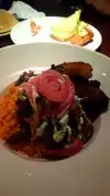 I visited Bahama Breeze as it was recommended by the hotel staff during my stay. I went on a Tuesday night, and it wasn't very busy. There was live music outside and sports showing on TV inside. Food: I was leaning toward the fish tacos or chicken quesadillas, but the bartender mentioned that they were known for their jerk chicken when asked so I went with that. It was way too much food for me. The chicken took up half the plate and came with yellow rice, black beans and plantains. I also did not find it very tasty and I think the chicken may have not been cooked all the way (lighting was dim, so I couldn't see if there was any pink) because my stomach started to hurt before I left the restaurant. Drink I had the pineapple mojito. It was OK and I liked that it came with a piece of sugarcane. If I go again, I would likely try the coconut one. Service I sat at the bar and found the bartender to be very personable and knowledgeable of the menu. However, she was also helping to get the food out so it took a while to get her attention for the check. Overall, the vibe was fun and they had a happy hour starting at 9pm so it could be a good stop for drinks and apps if you're hanging out at that time. I would try it again, buy choose different menu items.