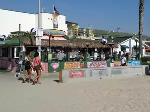 Simple perfect small beach bar for drinks and eats while people watching of the boardwalk passers by and all the happy humans enjoying Sand Diegos's sun swept Pacific Beach