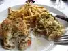 We were taken to this café by San Franciscan freinds and thé food was excellent. Calamari was very lightly battered, seafood spécial in à fish soup sauce was delicious, crabcakes were good, burger was average. Great meal, great Introduction to san francisco