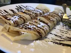 My Lovey surprised me with a Balkan inspired date night at this local eatery. I ♡ this cafe and grill. The ambiance is cozy with a successful blend of European charm meets 80's retro chic. They were down to one server who busted her tushy to help an almost full house. Not only was she a hard worker, but she was genuinely warm and friendly. Then came the food. We ordered the Balkan Mixed Platter--cevapi (beef/veal kebabs), PLJESKAVICA (meat patty), SUDZUKICE (beef/veal grilled sausages), lepinja bread along with a mixed salad and baby pickles on the side. Additionally, we chose the sopska salata with onions, cucumbers, tomatoes, and feta cheese. Just yummy for this gal's tummy. It was perfection. But we could not leave without ending the meal Turkish coffee and Palacinke, basically crepes with a chocolate hazelnut filling. Decadence and deliciousness. I highly recommend this reastaurant and we plan to go back in the very near future. Cannot wait to try the Gulas next time. I think this eatery is my new favorite.