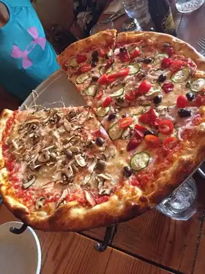 Great little shop with a nice feel to the place. Shady outdoor seating for summer days. They pizza by the slice if your in a hurry or you can sit and wait for a fresh cooked one. Good selections of beverages including a variety of beers. We found the pizza to be a little bit greasy but otherwise just fine.