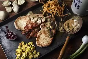 There is a certain grand air in the steak restaurant which is separated into two sections at least. There was a separate menu for lunch and brunch and we chose to taste both as our company decided to try meat for lunch (huge is the word for the steak:)), salad and breakfast. Everything was served timely but were offered baked cinnamon cakes (of the sort) because they believed they were delayed in serving. I was visiting the city but you could tell that this is a place where receptions like an early confirmation, baptism, or even wedding can be hosted.