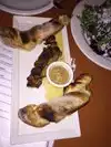 There were 5 of us, three adults and two kids (12 and 10). The menu is limited to pizzas and calzones, but a wide variety of toppings! Two of us ordered a side salad of mixed greens with a balsamic vinegaret. These were so large, that the 2 of us shared with the other three! We all ordered calzones. They were enormous, but made with fresh ingredients . I've had calzones before, but not as tasty! You can also enjoy beer, wine or pop with your meal.