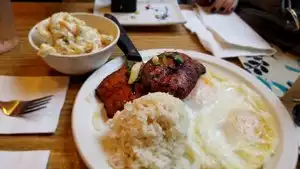Delicious BBQ chicken sandwich. The shoyu chicken was also tasty. Filling portions, especially with the sides (salad with sandwich, rice and macaroni salad with shoyu chicken), and fair prices for the quality and quantity of food. Fun, funky interior decor, and plenty of seating inside (and a little outside). Good service. Casual. Would recommend and would eat there again.