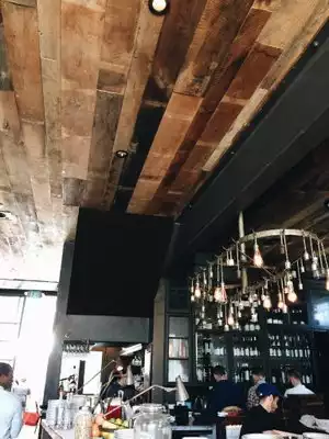 This restaurant has ambience and this is what brings in a lot of diners. There is both indoor and outdoor seating, as well as an extensive bar area, and a restaurant space at a different level from the bar. The restaurant is open for dinner week days and brunch on the weekend. Our party found service friendly and the order was served within a reasonable amount of time. The platters came with an appealing presentation. Why, then, only three stars? First, we were led to a table that was not well-cleaned from prior diners. Yes, the table had been cleaned, but there were multiple crumbs still on the table. The rusticness that adds to the ambience is also a problem for cleaning. That is, there are grooves in the table top that literally invite crumbs and residue to hide and remain on the table. The manager at brunch might spend less time with hands in his pocket and more time inspecting the tables. We found the food good, but not outstanding, except that the sticky bun was a major tour de force.