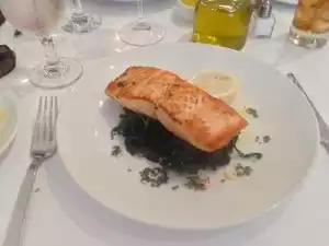We arrived without a reservation, and we received a very friendly welcome. I had salmon which was a generous portion. I had mashed potatoes as a side which was very fluffy. For dessert I had chocolate cake which melted in my mouth! Everything was really tasty! The service was excellent! We wil be very happy to return, and we noticed that many of the other guests were regular guests here.