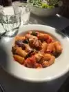 We tested our luck at the bar as the tables were all booked. Don´t regret the decision as the service at the bar was lively and pleasant and the menu the same as in the restaurant. The crostini we had as a starter were delicious and we ordered a second plate to share. The spaghetti clams and the campanelle crab were very good in taste and consistency, but they must have run out of clams and crab meat as there was hardly any in the plate. But the sauce was delicious so we were happy and did not mention anything to the kitchen. The only drawback is the noise from the music which was not allowing any real conversation. This made us leave immediately after the meal.