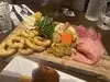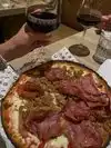 Long wait, we ordered a pizza with sausages and eggplant bruschettas. The eggplants were cold and for the pizza I have to say that it is not even close to a italian pizza. No comment for the wine we left two full glasses on the table.