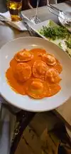 With reservations in advance, we were seated upon check-in. The 'vibe' in Barbusa was how we remembered it from our last visit...very festive. We were shown to our table and directed to pull up the menu on the QR code. (We prefer the old school printed menus and wine list, but this was fine.). As my husband and I started discussing entree and wine options we found ourselves yelling across the table. The music was loud and the acoustics in the restaurant resulted in a pretty boisterous environment. I'm sure this is intended...otherwise they could turn the music down a bit. We love the lively atmosphere but DO like to be able to carry on a conversation across the small table without shouting. I asked the girl at the check-in podium if we could sit outside and there was no problem with that. It was much easier to have a conversation and the parklet decor and heat lamps made it a pleasant place to dine. Be aware that on cooler nights, even with the heat lamps, it would be wise to wear a sweater or jacket. It was fun to people watch from this charming location in Little Italy. Our server was attentive and our meals were delicious. We shared the Caesasr salad, I ordered the Lobster Ravioli and my husband ordered the Bolognese Al Forno. All were generous portions! Plan on spending $60 and up for a bottle of red wine. Bread does not come with your meal, but you can order Garlic Bread for $12.