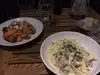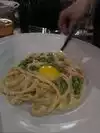 First time here and had an excellent dinner…nice atmosphere but the place is just too noisy…it take effort to keep up a conversation. Had the bone marrow appetizer…..tasty but very small amount….the bolognese and carbonara were very tasty….nice Caesar salad…..might be slightly less noisy outside.