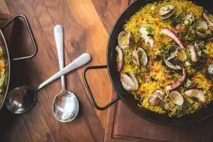 We chose this newly opened restaurant, because they offer paella. Unfortunately, the dishes were somewhat skimpy both on the seafood and the rice. On the plus side, the management changed our table so as not to be next to several noisy toddlers, the waitress was especially accommodating, and the appetizers of cheese and salad were good.