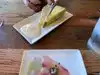 We had spect,chorizo,cheese,hummus with pine nuts and citrus,hanger steak, olives,and wine. They even dropped of a grilled ham and cheese complimentary..regular or sparkling water.. loved the variety and we shared everything..lots of fun.Gabrielle did a great job serving but I love a resturant where any of the wait staff walking by pick up a plate and continually asked if we needed anything.. good service makes a meal better..this food needed no help and got it anyway..well trained staff cudos