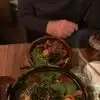 Very busy little place with an upstairs. Can be quite noisy because the space is tight and there are many people. But the food is great. My husband and I shared the steamed dumplings, chili shrimp, and the veggie pancake. I recommend all 3. My son had the hotstone chicken bowl and my daughter had the hotstone bulgogi bowl. Both enjoyed it and they were good size portions. I also enjoyed a rasberry mojito. I recommend Barn Joo.