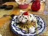 Nice spot for lunch or snack in historic Old Town. We sat outside amid lots of flowering plants and a beautiful old tree. After a big breakfast we just wanted a snack so we ordered appetizers. We each ordered one but really I think they were meant to share. I had nachos. It was a huge platter and had some black beans in it which was good. Enjoyed it. My husband had a quesadilla which was also huge, more a dinner size. Food was good, staff were friendly. Beautiful spot to sit out on a nice day.