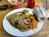We had the chicken tamale, chicken enchilada with mole, fish taco and guacamole. The mole sauce was delicious and the food was very good. The “beat margaritas” were excellent. Nice outdoor patio too.