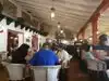 Less crowded than in the plaza. Great chips and hot bean dip ( heat hot) drinks are good not fabulous but nice atmosphere. Did not eat here so I can't really comment but it looked and smelled terrific.
