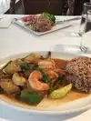 Off the beaten path. Nice and clean and airy inside. We stopped for lunch and had a great meal. Waitstaff were attentive. Sometimes a little too attentive with the water and wanting to remove our plates before we were finished. The place wasn't busy, so we couldn't understand the rush! The Thom car guy was fantastic. I can't recall the name of my dish but it had shrimp, red peppers, rice and a nice spicy sauce. Fresh veggies, great seafood and a great price. Had a nice bar too.