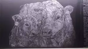 Dry-aged stakes on the blackboard