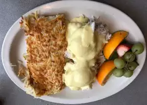 The Benedict breakfasts are pretty good. Oyster, salmon, and seafood all well prepared prepared and good. Nice fruit on the side. Enormous amounts of hashbrowns. Coffee not so great..... All in all things were okay, not great.