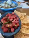 We had the tuna fish stack, calamari, cviche, and happy hour spirits. Great place, great team, good prices with an outside patio. One on my friends had the large clam chowder and wanted to fall asleep right after.