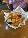 My wife and I Were hungry driving around San Diego when we came across bat park fish co. Parking is free for two hours and close to eatery. The eatery is very clean with a bar area next to dining area. The server was very helpful on deciding what to order. My wife order the half seafood sandwich and salad. I ordered the cod fish and chips with coleslaw. Both of our meals were fresh and cooked perfectly. We both highly recommend bay park fish company to enjoy a fresh seafood meal.