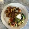 If you're in a rush, this restaurant is not for you. It's a super chill atmosphere where no one is pushing you to order or to leave. It's tucked in a little corner of the Hollywood Hills and has a small town feel. I ordered some kind of scramble with REAL home fries (like actual chunks of potatoes) that were super crispy. Eggs were cooked just right and so fresh.
