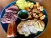 The music is super loud, so unless you are prepared to scream I would skip, as it is is impossible to have a conversation. Food was ok, our only issue was the spicy mayo on an egg and bacon sandwich, as it was actually very hot not spicy. When we advised the waiter, the manager came and apologized. He offered to redo the sandwich, but we advised it was not w as the person had a stomach ache following the hot sauce. Up until there the review would have been good but unhappy that at 14h on a Saturday they only had a brunch menu available no lunch. The problem was that the manager came back to advice the menu stated the sandwich has spicy mayo..as to justify the excessive amount of hot sauce it had. Frankly, i personally eat rather often hot food, I tasted the sandwich... the mayo was hot not spicy.