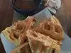 Went for with a girlfriend and was not disappointed. We shared dishes and left stuffed! Must try the waffle sandwich, so good! Plantains were on the savory side so I dipped them in the waffle syrup. My complaint would be how loud it is in the dining room. Very industrial so not much to absorb sound. There is outdoor seating as well. Will definitely go back for brunch if I’m back in Miami. Just a couple blocks from the Wynwood walls so you can walk off the waffles :)