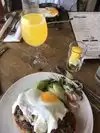 What a delicious experience. Started with a tangy watermelon mimosa and avocado toast. For the main, had CHILAQUILES and SHRIMP & POLENTA. The chaquiles was spiced nicely Ava very flavorful. The polenta was creamy and smokey.. very good. We sat on the patio with attentive service. Fun atmosphere inside. Will definitely go back.