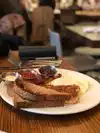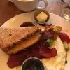 Atmosphere seemed nice on a rainy morning. Unfortunately, the breakfast was awful. Coffee had black flecks in it (from bottom of burnt pot). Waitress comped us, but already not a great way to start. Ordered eggs, toast and hash browns and chose candied bacon as my protein. Only had one choice of bread. The bacon was inedible (tasted like old grease). I could not eat the bacon. My husband ordered French Toast. Two very high, thick pieces of bread. Not appealing looking and not tasty.