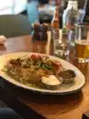 My husband had what he claimed was the best breakfast sandwich he has ever had. Braised pot roast and egg - he licked the plate and would not give me a bite. I had the oatmeal which was nutritious and much better when they brought more cranberries and brown sugar. Only downside was dirty celery in the bloody Mary. It was replaced quickly.