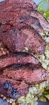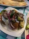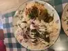 Fabulous Israeli/Mediterranean food. Plentiful portion sizes. Delicious chicken kebabs, pita, vegetables, hummos, and amazing hand kneaded bread. Hand kneaded bread had perfect spice blend.