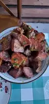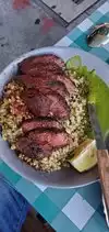 Absolutely AMAZING food and service. Grilled Hanger Steak: Cooked and seasoned to perfection. Falafel: Perfect in every way. Batata Harra (fried potatoes): Freaking fantastic. Ask for them cooked extra crispy. Seasoned and cooked to perfection Pita bread: mediocre.