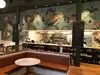 My wife and I had an early dinner here. The dinning room was light-filled, with tall windows along Second Avenue. It has a modern, yet retro vibe with huge murals by Seattle tattoo artist Kyler Martz. The menu focuses on affordable basics done well. We had a burger, hush puppies and roasted asparagus and everything was very good. It was very busy and there wasn’t a lot of wait staff, but our server handled the crowd well. We’d definitely go back.