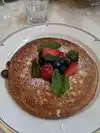 I did not plan on going here. The original breakfast spot was closed and we happened to see people enjoying their brunch through the windows on the way back. It looked a little too upscale for me, but we gave it a try anyway. This restaurant is connected to the State Hotel. Service was good and ambience was quaint. There were dried flowers on each table and the furniture was practical, but cozy. The wall paper in the restaurant and hotel was really cool. We ordered ricotta pancakes and a breakfast plate to share. Nothing spectacular, but quality was good. The pancakes came out way before the breakfast, but I didn’t mind. The dishes came out piping hot. You can tell they came straight from the stove, which I appreciated.