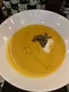 Ben Paris. Situated on the street level of the State Hotel at one of the entrances to Pike Place. I had hoped to try this place last April but circumstances interrupted. Tonight the girlfriends and I decided it was time. The occasion was bites and drinks before the Seattle Symphony performing Bach's St. John's Passion for the first time: in honor of the 300th anniversary of its inaugural performance on Good Friday, April 7th 1724. Highly recommend Réservations through OpenTable. First girlfriend arrived by bus and made sure to order the clams and the butternut squash soup and the crab salad. Second girlfriend arrived by light rail just as I walked in. We added buttermilk jalapeño hush puppies, the kale cauliflower Caesar salad, and fried halloumi cheese to the table. Girlfriend number one got a Mocktail. Girlfriend number two got a glass of white. And I got the spring drink that would donate one dollar for international women's day. That drink was a thing of beauty. It involved some many things I love including muddled fresh mint, fresh berries, fresh (not dried) lemonade slices, and an unholy strength of bourbon. The clams were delicious especially with the hunks of toasted sourdough. But the soupy base was way too, too salty to really enjoy, even when cut with the bread, so we ended up repurposing the delicious bread to scoop up the nutty butternut squash soup which was beautifully balanced and wonderful in so many ways. The crab salad was amazing! Truly so fresh with large chunks of crab meat as well as the fresh crunch of celery root etc. sliced thin… kind of wished you had three servings, one for each of us. But hands-down our favorite was the kale cauliflower Caesar salad. Don't miss that one. There's something akin to perfection about the kale being chopped up so it's not overwhelming to chew and having the cauliflower sliced and tossed in all that delicious shredded shredded cheese with the toppings. We asked for extra fresh lemon slices because that brought out the flavor of the salad. The butternut milk jalapeño hush puppies were very easy to eat with the pimento cheese dip. The fried halloumi cheese was definitely on the saltier side too, but such an enjoyable texture and the slightly sweet dipping sauce saved the day.