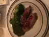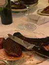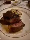 A dark place that has two floors, there are many waiters running from one side to the other. Great meat, we took a pothouse steak (minimum 2 people) and it was cooked very well, it cut like butter and great flavor. As a side dish we took the potatoes with blue cheese (like gorgonzola), also good this. Wine a Pinot Noir from Oregon (deserves, $99). Total bill $296. Ribs, but great meat. By a Milanese milanist