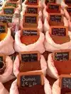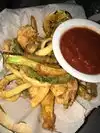 Broad selection in antipasti sized dishes and personal sized pizzas with fish, meat, and veggie offerings in each. Especially enjoyed sweet potato fries, eggplant caponatina, and kale-romaine caesar as a vegetarian. Very popular sidewalk tables on side street off Valencia.