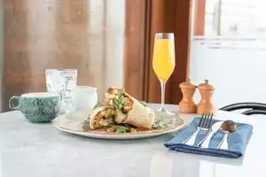7 of us met for lunch yesterday and sat inside....i had an oj mimosa, and my partner had a bloody mary.....next, i had the besaw omelette and she had a pancake with a side of eggs....the others had a variety of drinks/food...the food/drink was great....the staff were excellent, as it was hopping..the atmoshphere is fun.....thx so much...