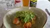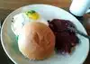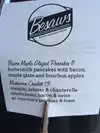 Wait time is approx 40 mind on a Sunday morning and you can take a free coffee next door at a sister company to bridge the time. We ordered several dishes and I had the Besaw’s hamburger. Well proportioned and tasteful. By mistake I got a different hamburger first and that one (with the pork) looks and had a little bit of more flavor than the Bersaw’a beef burger.