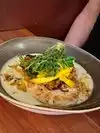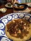 I think I just took a mini Vacation to NOLA, so happy we found it. Met Chef Paul last nite who signed my Unique Chicago Eats book. When we read about Big Jones we just knew it would be good!! We both started out with the Whiskey & Bourbon menu, lots to choose from, I settled on a Bourbon & my friend got a Scotch Whiskey, both were good. The Pumpkin bisque soup was excellent, I savored every bit. My friend had the Gumbo TaTa, he liked it but just a tad on the salty side, but he said the flavor was there. He had the fried chicken with Collard greens & sweet potato hash, I got the Shrimp & Grits, Let's put it this way, this is the 1st time there were no leftovers. It was that good!! We finished up with an order of bread pudding and the rice fritters, both were so so good, I would order them again. Experience was very good, food was delicious and we will definitely go back without hesitation.