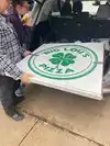 The wait was not as long as we were told - they move you through the line quickly. It was amazing to see what a 62 inch pizza pan looked like (and it takes 30 pounds of toppings!). Even the 42" pizza was huge! Our pizza tasted great and we had a good server too who very willingly took photos of our group.
