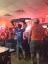 Dropped in the other day for a birthday party around 6pm and this place was packed. When I first drove up and saw the large parking lot filled with cars I knew it was going to be interesting. You come right in and wait in the line to get to the counter to order as you cannot order at the table. Drinks or food no difference. Note if you say you are in a large group, you will be hit with a service charge even if you arrived by yourself. The pizza will take awhile on busy hours but I noted that other items like salads, breads and wings did not take as long to arrive so you may want to consider doing that. There are a large number of large tables in here so they can handle just about any size group. It can get cramped with the proximity of neighboring tables so be prepared for that and have patience. The food is decent and the long slender metal trays are there for a reason. I was puzzled about that choice of "plate" until I saw just how big these pizzas really were. Some of the slices are what appear to be at least 18 inches long. The pizza is not like pizza hut pizza or new york style but it is decent enough. In a sense what we have here is really more of a novelty. The hot wings are not as hot as they claim if you are strong with the spice. I went with the habanero hot and was barely warm in my opinion. What is sad is it seems I was charged an extra 1.99 for a hot that was not really hot. Big Lou's is easy to see from the road so you don't have to worry about blinking and missing it. The crowd starts to ease off around 8pm. They have many birthdays in here so expect a number of Happy Birthday songs to be sung. If you like beer, you will not leave thirsty.