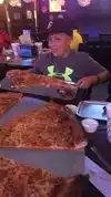for those that read trip advisor, i'm certain you take a clue in as to when to avoid crowds, etc. such as my group did going on Sunday between lunch and dinner crowds. really not that much of a wait for the novelty of eating there. Yes, the pizza is huge! yes, the wait can be long, but if you have a good family or crew with you, this place as great ambiance to help pass the time. It's a great place to play "I spy" with all the nostalgic memorabilia on the walls. The pizza itself -- fun to eat, and while not the greatest in the world...it certainly is better than any chain; and most of the "boutique" pizza joints. now, this is NOT NY style...and it is not full up "familia" (Italiano)..and you can tell by the sparse use of sauce, but still, the pizza is tasty, the place is fun, and I can say I've visited another Diners, Drive Ins and Dives locations! :-D Enjoy! Go for it -- just to say you did it! I've included a pic of my boys in front of the pizza pan to give you good measure. My youngest is 43" tall. Mama mia!!!