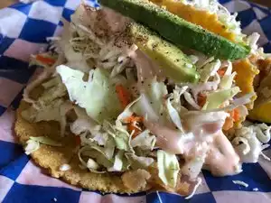 The grilled shrimp tacos are served on good corn tortillas that are warmed on a grill until the edges are just crisp. Avocado, cabbage, perfectly grilled shrimp, and a mildly spicy sauce make these amazing. Definitely get with the charro beans. They are pretty good alone, and even better with the tacos. Also have good fried cod and hush puppies are solid.