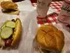 Visit to try the hamburger. We got a cheeseburger, excellent. We also got 2 hot dogs. You can put mustard, ketchup, pickles, onion, etc. on your own. Very good prices compared to other similar shops.