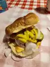 Very classic American burger experience. Good prices and exactly what expected from a burger joint. Has a lot of history on the walls which creates a established and classic dinner atmosphere. Would recommend as a quick stop for a bite to eat. Only downside is not a huge amount of Vegetarian options - only egg or egg and cheese burger.