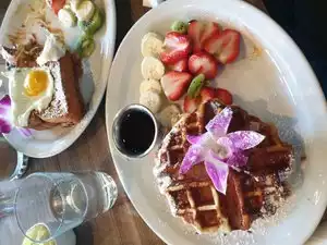 Menu is HUGE! Creations are very elaborate and tasty, there’s really something for everyone. Love the outdoor seating. Sometimes there’s a little bit of a wait on the weekends but it’s worth it and not too bad. Servers are very friendly and explain the menu very well. Check out their instagram for pictures of the menu items!