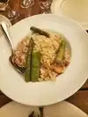 Darling corner bistro. Second time I’ve ordered salmon risotto..and second time ordering the grilled calamari with a very nice little arugula salad with capers and a lemon olive oil dressing. All very good. House made tartuffo for dessert and attentive service throughout. Cash only so come prepared..it’s worth every penny!